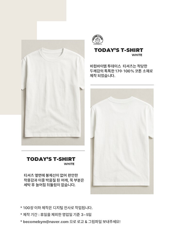 적당한 두께감의 톡톡한 17수 코튼 100% 티셔츠에 나염 & 디지털 전사로 나만의 티셔츠를 제작해 보세요.