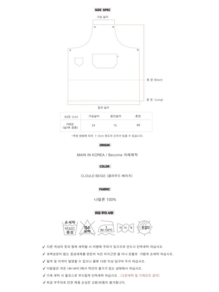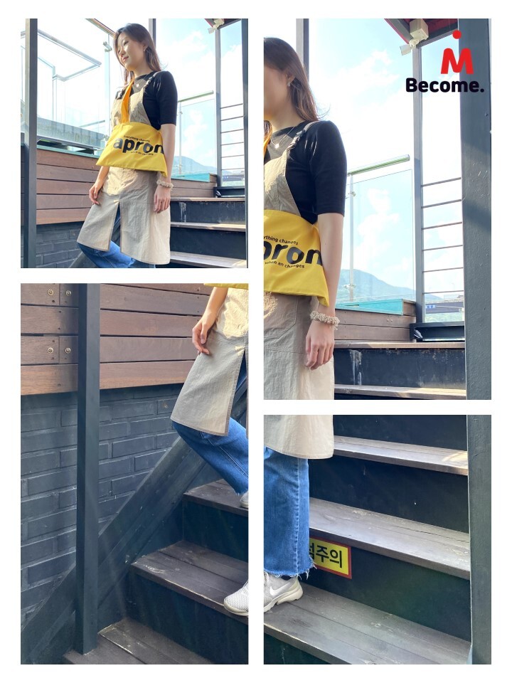 150g의 깃털처럼 가벼운 무게의 에이프런으로 하루종일 착용하는 작업환경에서 어깨나 목에 무리가 가지 않아 편안합니다. 밑단 트임을 통해 자유로운 활동성을 보장합니다.생활방수 원단 사용으로 주방이나 카페에서 착용하시기 좋습니다.