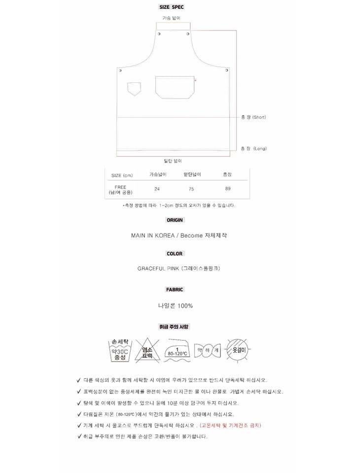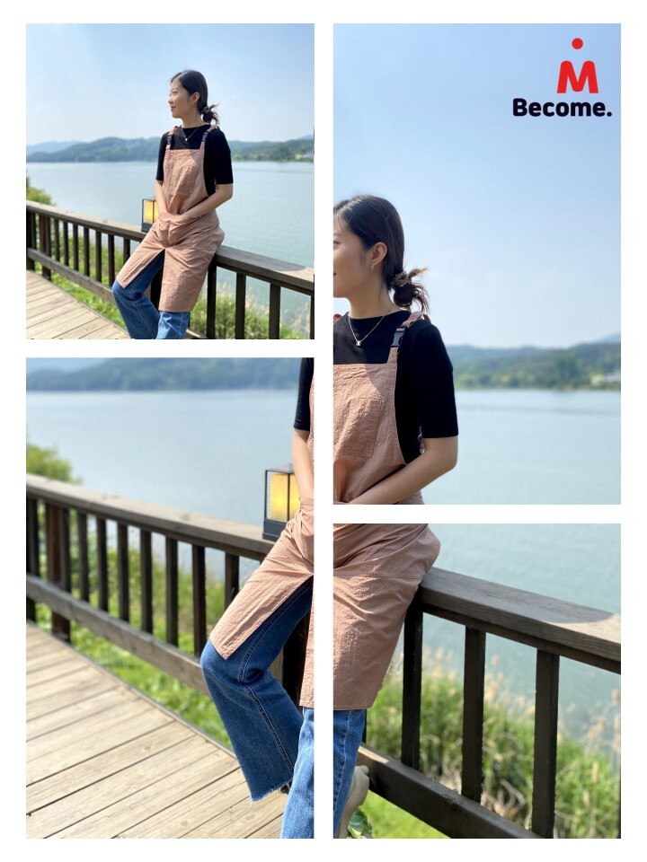 150g의 깃털처럼 가벼운 무게의 에이프런으로 하루종일 착용하는 작업환경에서 어깨나 목에 무리가 가지 않아 편안합니다. 밑단 트임을 통해 자유로운 활동성을 보장합니다.생활방수 원단 사용으로 주방이나 카페에서 착용하시기 좋습니다.