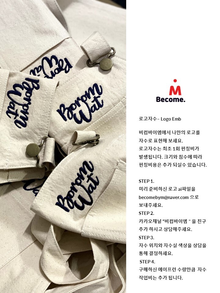 로고 자수는 최초 로고 자수펀칭비가 발생됩니다. 사이즈 및 컬러수에 따라 가격이 변동됩니다. 카카오톡 에서 "비컴바이엠" 친구 추가 하시면 자세한 상담 가능합니다.