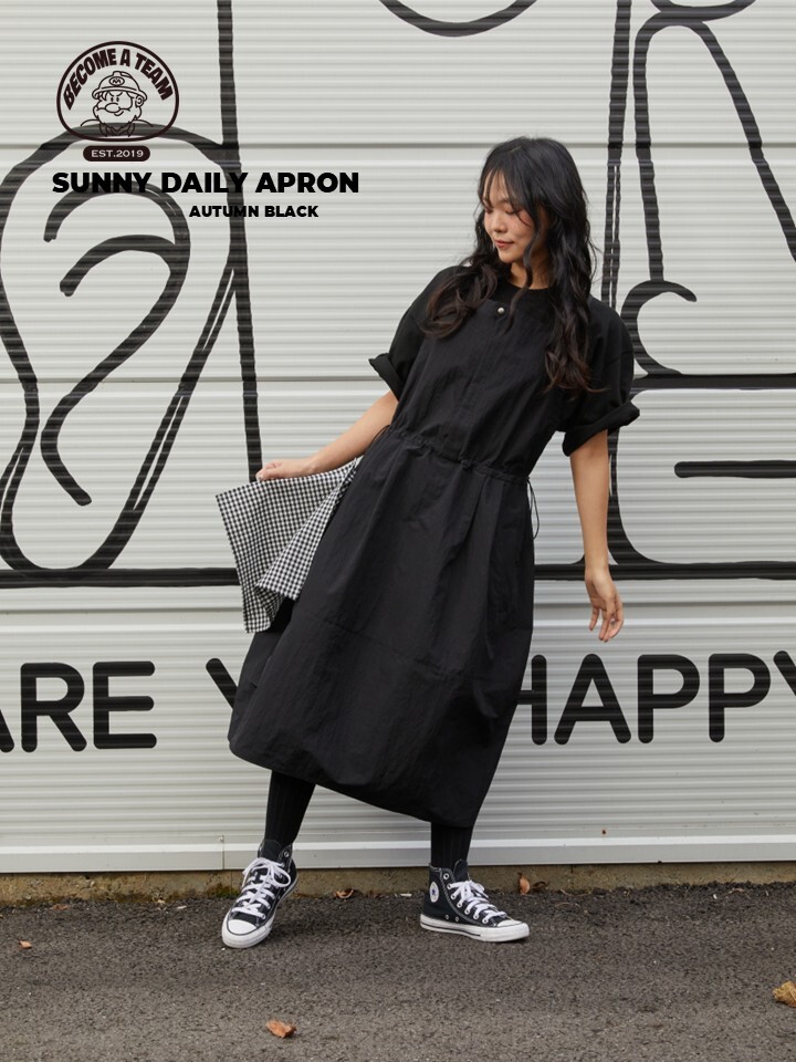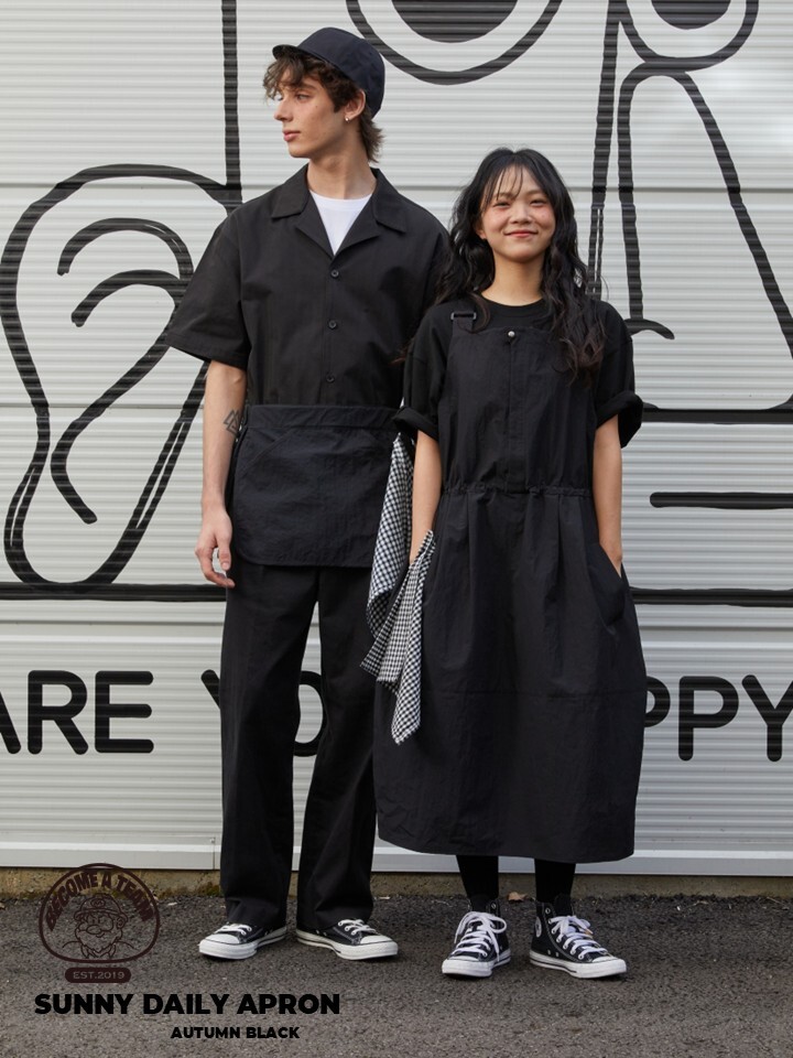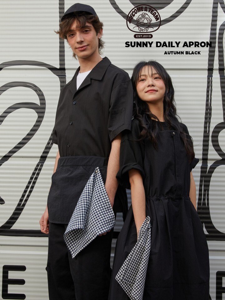 써니 데일리 에이프런 원피스는 조절 가능한 4cm 폭의 밴드 어깨끈으로 제작되어 하루종일 편안하게 착용가능 합니다. 좌우 깊은 포켓이 있고, 포켓상단에 키친클로스를 탈부착 가능한 스냅버튼이 있어 다양한 활용이 가능합니다. 생활방수 원단으로 제작되어 다양한 작업환경이나 일상생활에서 착용 가능합니다. 허리에 조절 가능한 엘라스틱 밴드가 있어 편하게 착용하실 수 있습니다.